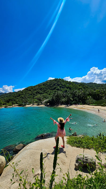 Parque Tayrona: selva caribeña, senderos entre palmeras, calas de agua transparente y esa pausa que el cuerpo pide para integrarlo todo.